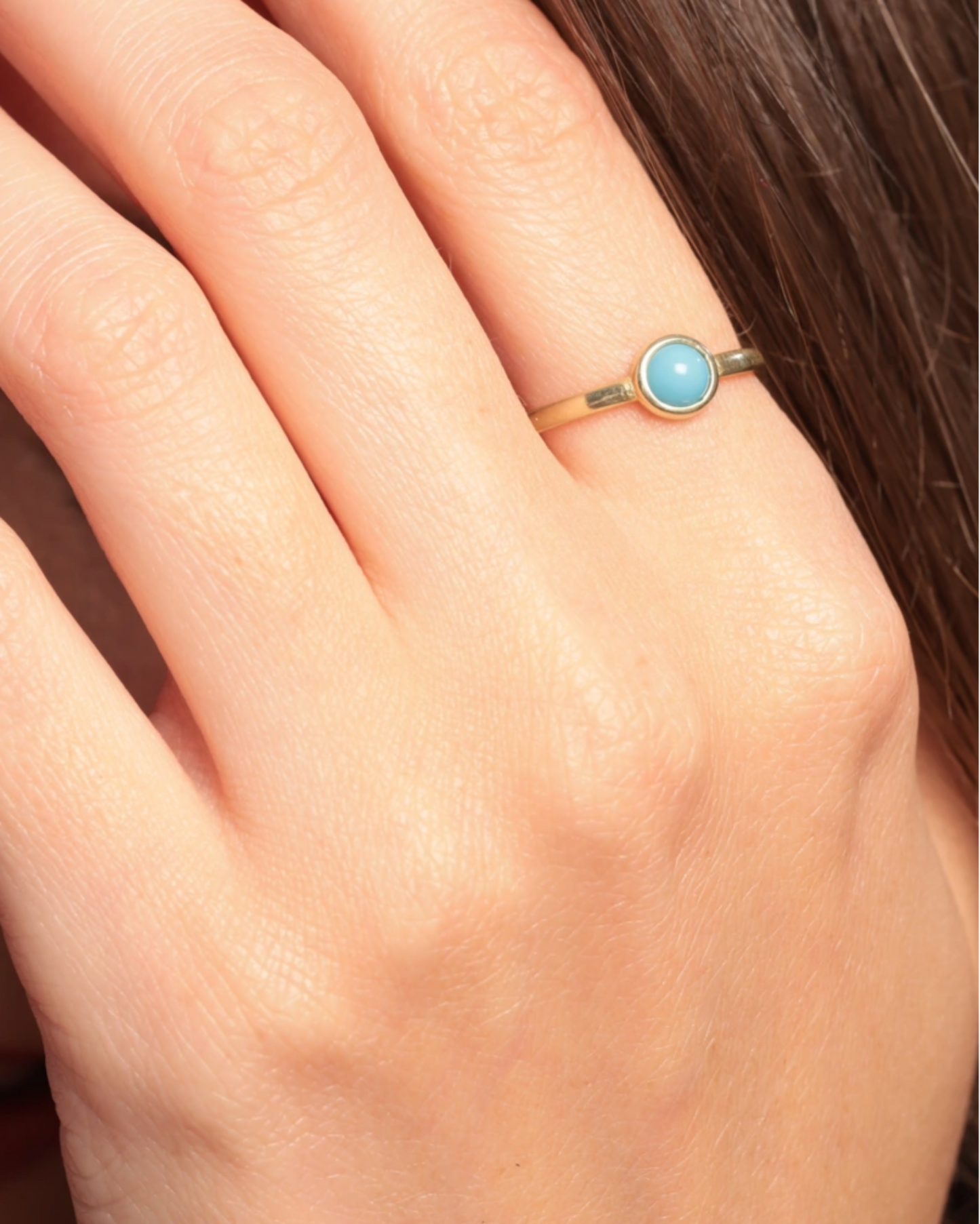 Caelum Ring, gökyüzünün huzurunu yansıtan turkuaz taşıyla tasarlandı. 14 ayar altından el işçiliğiyle üretilen bu yüzük, günlük şıklığına renk katmak isteyen kadınlar için ideal. Minimal formu sayesinde tek başına zarif bir görünüm sunar ya da farklı yüzüklerle kombinlenerek modern bir stil yaratır.